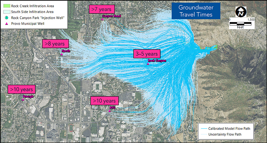 Over the last decade, the city of Provo, Utah, has experienced rapid growth that is projected to continue over the next few decades. This rapid growth has resulted in increased water demand. To date, Provo’s water supply has come from mountain springs and groundwater pumped from the aquifer underlying the city. However, the pumping has resulted in the aquifer being over-appropriated, meaning more water has been pumped from the aquifer than added to it via natural recharge. The over-appropriation from increasing water demands and the impacts of climate change have led to declining aquifer groundwater levels over the last 40 years.