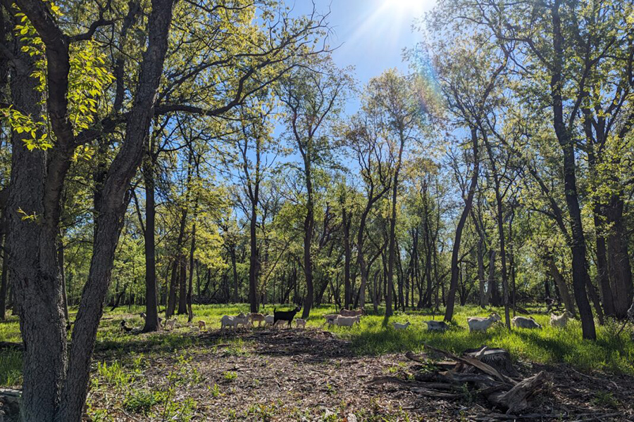 The park also incorporates adjacent Hasenbank Woods, which is owned by the city and protected by a conservation easement that prohibits development. Recently, the SWWD brought in teams of goats (shown further below) to eat the buckthorn, a non-native, invasive species that was overrunning the woods. Once the ground was cleared, local volunteers helped seed native plants.