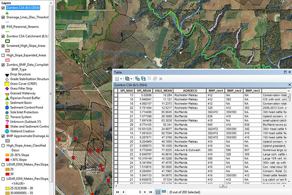 2. Barr's work on the Zumbro River Watershed Restoration Prioritization project included a GIS database complete with a prioritized list of upland and near-channel critical source areas and associated BMP recommendations for each site.