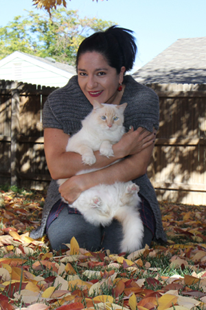 Roxana with her 13-year-old ragdoll cat Charlie.