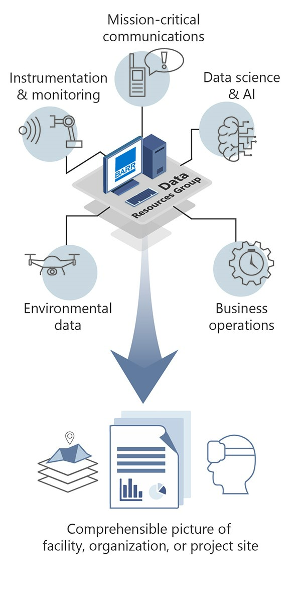 Barr’s data and analytics group works with our clients and their data to help create a complete picture of a facility, organization, or project site. Barr has expertise in data-related disciplines including data science, 3D visualization, big data, instrumentation and monitoring, and application development.