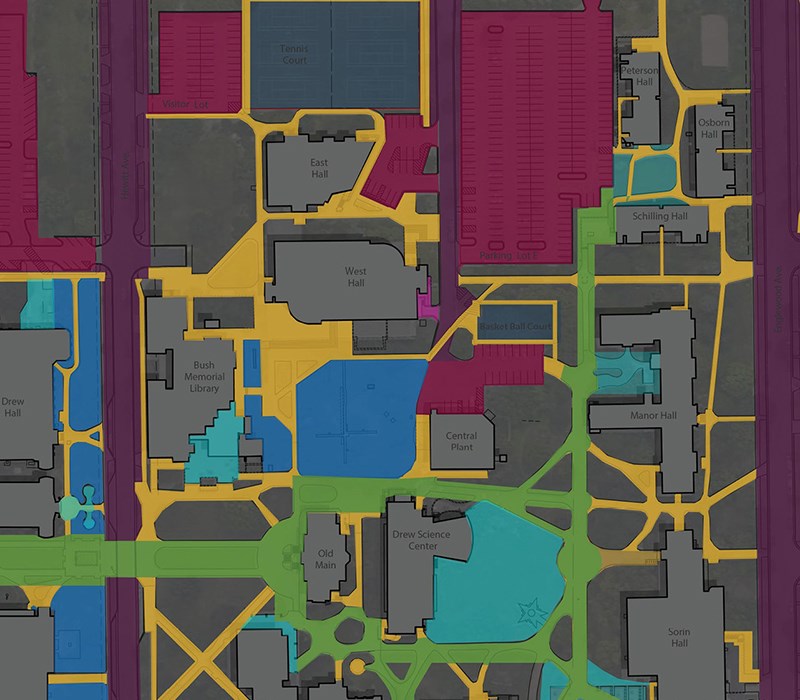 To help Hamline more effectively control campus light, Barr presented a conceptual design in the master plan for a new control system that operates all campus lights from a single location. Designed for minimal maintenance, the system would conserve light and energy through automated features, such as dimming based on the time of day. By integrating this “smart” infrastructure with energy-efficient LED fixtures and purposeful aesthetics, the master plan will help Hamline continue to enable everything from evening sports events to all-night study sessions while minimizing its impact on our night sky.